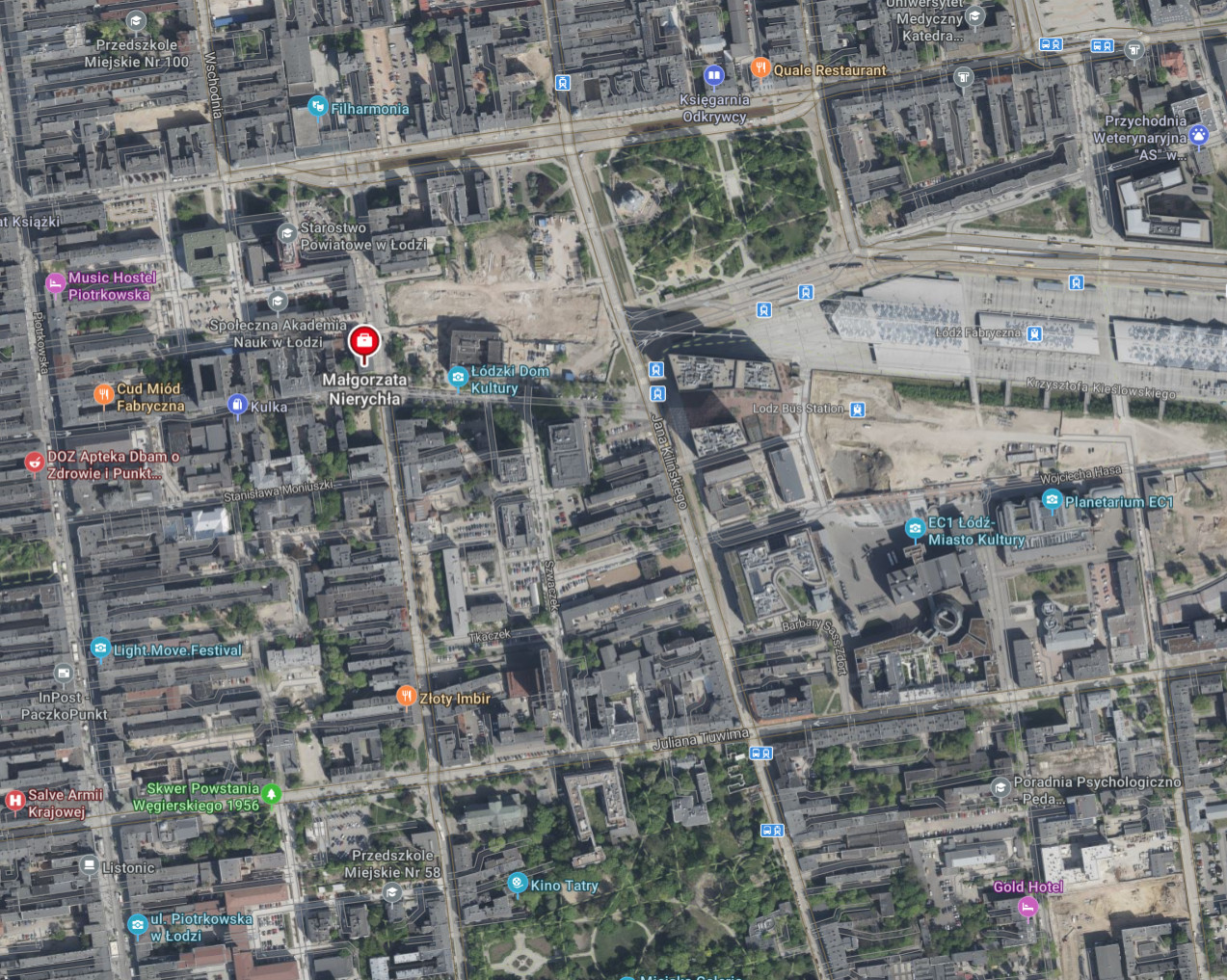 Nasza kancelaria mieści się w samym centrum Łodzi, przy ulicy Sienkiewicza 15, w dogodnej i doskonale skomunikowanej części Śródmieścia. Lokalizacja w pobliżu Łódzkiego Domu Kultury, nowoczesnego kompleksu EC1, reprezentacyjnej ulicy Piotrkowskiej oraz Dworca Łódź Fabryczna sprawia, że łatwo do nas dotrzeć z każdej części miasta. Bliskość kluczowych punktów Łodzi to dodatkowa wygoda dla klientów, którzy mogą połączyć wizytę w kancelarii z innymi sprawami w centrum miasta.